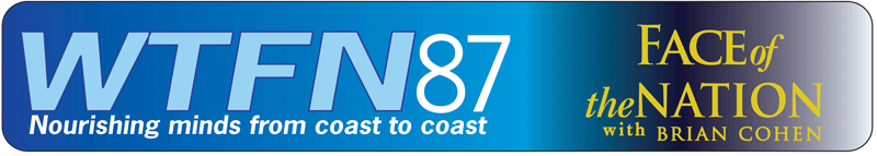 | (The TV studios of WTFN’s award-winning current affairs newsmagazine Face of the Nation. Host Brian Cohen looks uncharacteristically sombre behind his news desk. The theme music starts up over the opening titles and the director points to Cohen, who looks into the camera.)
