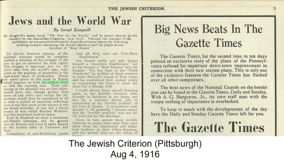 BOYLE: “I understand that the trial moves to Auschwitz to address Irving’s claim there were no gas chambers. What was Irving’s evidence?” KALE: “Essentially the lack of evidence. The Nazis allegedly dropped Zyklon B pellets through rooftop openings in the buildings, but no such openings existed. Irving’s catchphrase was ‘No holes; no holocaust.’ By casting doubt on the existence of the gas chambers, Irving cast doubt on the 6 million, so the existence of gas chambers had to be defended. BOYLE: “How do we know they didn’t exist?” KALE: “Dr. Franciszek Piper, the senior curator and director of archives of the Auschwitz State Museum, admitted it! In a videotaped 1992 interview with journalist David Cole, he said no gassings of human beings took place at Auschwitz. The rooftop holes were added after the war by the Soviet Union for propaganda purposes. If you'll look at the monitor, you’ll see what I mean. On this score, the filmmakers even committed fraud by showing the audience a putative blueprint of a gas chamber that did include rooftop openings. The scene is so phony and manipulative that it did more to support Irving than discredit him.” BOYLE: “Why the need to falsify the existence of gas chambers, anyway? Surely, the evidence of systemic maltreatment of Jews—as well as gypsies, homosexuals and communists—was enough to justify the need for a Jewish state.” KALE: “On the contrary—the gas chambers are essential. Auschwitz is the holiest shrine of the Holocaust®, and Israel is built on the ashes of the ‘6 million,’ figuratively speaking of course.” BOYLE: “Why figuratively?” KALE: “The idea that 6 million Jews were killed under the Nazi regime is preposterous, but since it is the founding lie of Israel and the cult of the Holocaust®, the number must be insulated from criticism lest the myth of Israel as the necessary sanctuary for Jews collapse.” BOYLE: “But how do you know the 6 million figure is a lie?” KALE: “Because there is no evidence for it. For example, the International Red Cross could only account for 271,301 deaths in all camps. There have been dozens upon dozens of occurrences of ‘6 million’ pertaining to dead or persecuted Jews going back at least to the beginning of the 20th century. If you'll look at the monitor again, I'll show you some examples. The first is in a New York Times article comes from Nov. 1, 1905. It tells of 6,000,000 Jewish families being expelled from Russia between 1890 and 1902. BOYLE: “Families?!” If the average family size was 3 people, that’s 18 million!” KALE: “It gets better. This one from the Jewish Criterion of Pittsburgh on Aug. 4, 1916, speaks of 6,000,000 Russian Jews struggling for their civil rights. It also said the figure was half the Jewish race.” BOYLE: “I didn't know Jews constituted a race.” KALE: “They don’t, but what matters is that we are told that the total number of Jews is 12 million, but this is impossible if 18 million or so were expelled 12 years earlier! On Sept. 8, 1919, the Times again runs a ‘6 million’ story, this time about Ukrainian and Polish Jews. What are we up to already—24 million? In all, there were more than 250 mentions of ‘6 million’ Jews in various publications before the Nuremberg Trials. BOYLE: “The media creates suffering Jews as easily as modern banks create electronic money today—out of thin air!” KALE: (They both laugh briefly) “My last example, also from the Times, dates to June 10, 1900! It’s my favourite because it is one of the earliest if not the earliest mentions and proves that “6 million” never had anything to do with Hitler or gas chambers. On this day, Rabbi Stephen Wise addressed a meeting of the Federation of American Zionists and uttered this candid admission: ‘There are 6,000,000 living, bleeding, suffering arguments in favour of Zionism.’ “Let that sink in for a moment: ‘in favour of Zionism.’ From the outset, Wise directly linked the suffering of an imaginary 6 million Jews to the creation of a future Israel. The corollary to this statement is, of course, devastating. Because the 6 million had been invented 45 years before the end of World War II, the official number of Jews who died at Auschwitz and other concentration camps had to be fabricated to conform to the preexisting propaganda. That means there could not have been any gas chambers. Irving was right—there was no Holocaust® and all Denial did was confirm that fact.” BOYLE: “If the 6,000,000 is a lie, where does it come from? It had to come from somewhere because the number is repeated over and over like a mantra.” KALE: “The word mantra is apt. Though no definitive source has been found for the number, there is a prophecy in the Torah that states that before Jews are allowed to reclaim Palestine, 6 million of them had to be burned to death as a human sacrifice to their god Yahweh.” BOYLE: (visibly shaken) “Good God!” KALE: “ ‘Good’ would not be my word of choice, but I appreciate the emotion. I have one final image, Lance. Even if we ignore the absurdity of the 6 million, Denial is guilty of lying by omission. In June 1992, the Polish government officially lowered the number of estimated dead at Auschwitz–Birkenau from 4 million to 1.5 million. Nowhere does this emendation appear in the film or in any Holocaust® propaganda.” BOYLE: “Why not? KALE: “I’m glad you asked. Even the slight accommodation with criticism would open up the floodgates of rational enquiry. Any proper investigation of Jews in the 1930s and ’40s would show that their numbers increased over the period of Hitler’s régime. According to the Jewish World Almanac, the worldwide number of Jews in 1933 stood at 15.315 million and in 1948 was 15.753 million. The American Jewish Committee is the source for the 1933 number. Clearly the Holocaust® belongs to the realm of fiction and religion not fact and history.”